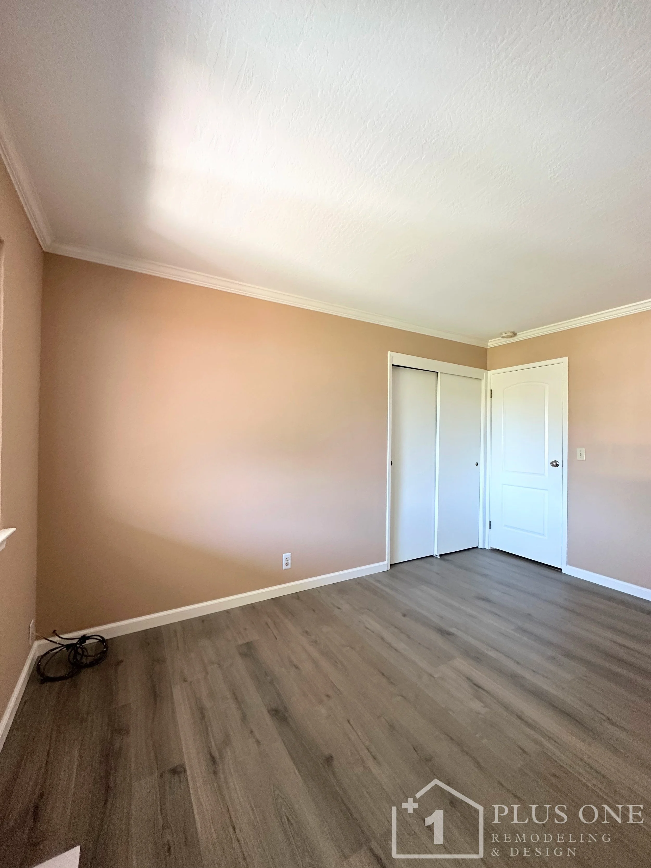 This bedroom renovation project focused on delivering a clean, modern, and refreshed living space. The scope of work included the removal of outdated wallpaper, drywall surface refinishing, and a full interior repaint in a soft, calming tone. We installed elegant crown molding and new baseboards to add architectural character and definition to the room. Durable and stylish vinyl flooring was laid throughout, providing a low-maintenance and contemporary finish. The transformation was completed with the installation of repainted sliding closet doors, enhancing both functionality and aesthetics. This cohesive upgrade brought new life and comfort to the client's personal space.